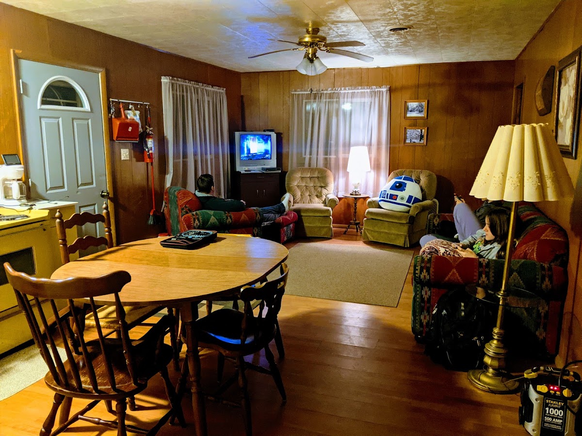 Our family of four stayed in cabin #3 for three nights and it was perfect! 3 bedrooms and super cozy beds, full kitchen with everything we needed, TV with VCR and DVD player. We enjoyed our time snowmobiling and the location is perfect to get right on the trails. The restaurant has delicious food and drinks along with gas for our sleds. We have booked for next year already. The owner stayed up and waited for us to arrive and took great care of us. We are so excited we have found a great new spot to visit each winter.
